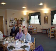 We are open five days a week and provide daytime care, activities and companionship for fifteen older people. We collect our service users and return them home by minibus, and also run regular social nights. We have a carers' group which meets once a month 2.30pm till 3.30pm, and we run a drop-in lunch group this is open from 12pm till 1.30pm (photo) which is widely used by local people.
